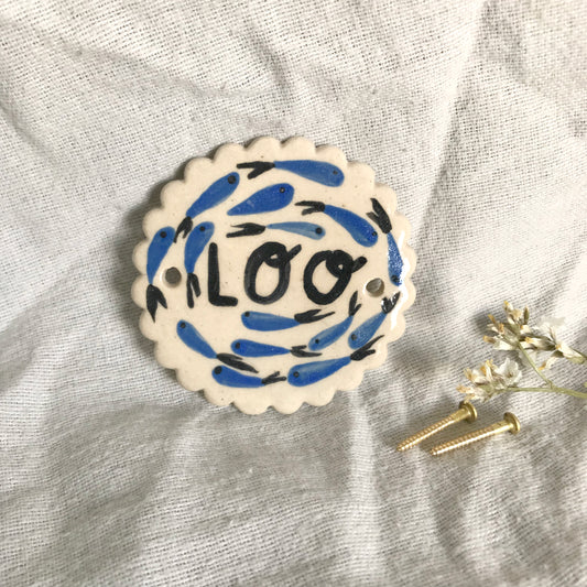 'WC' Bathroom Plaque With Pomegranate and Gold