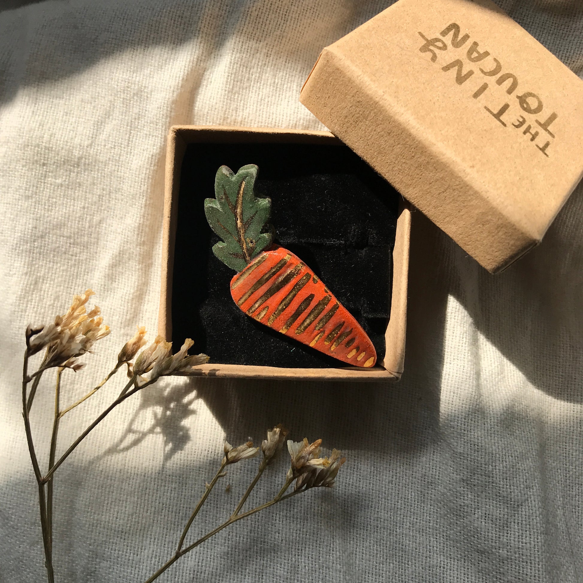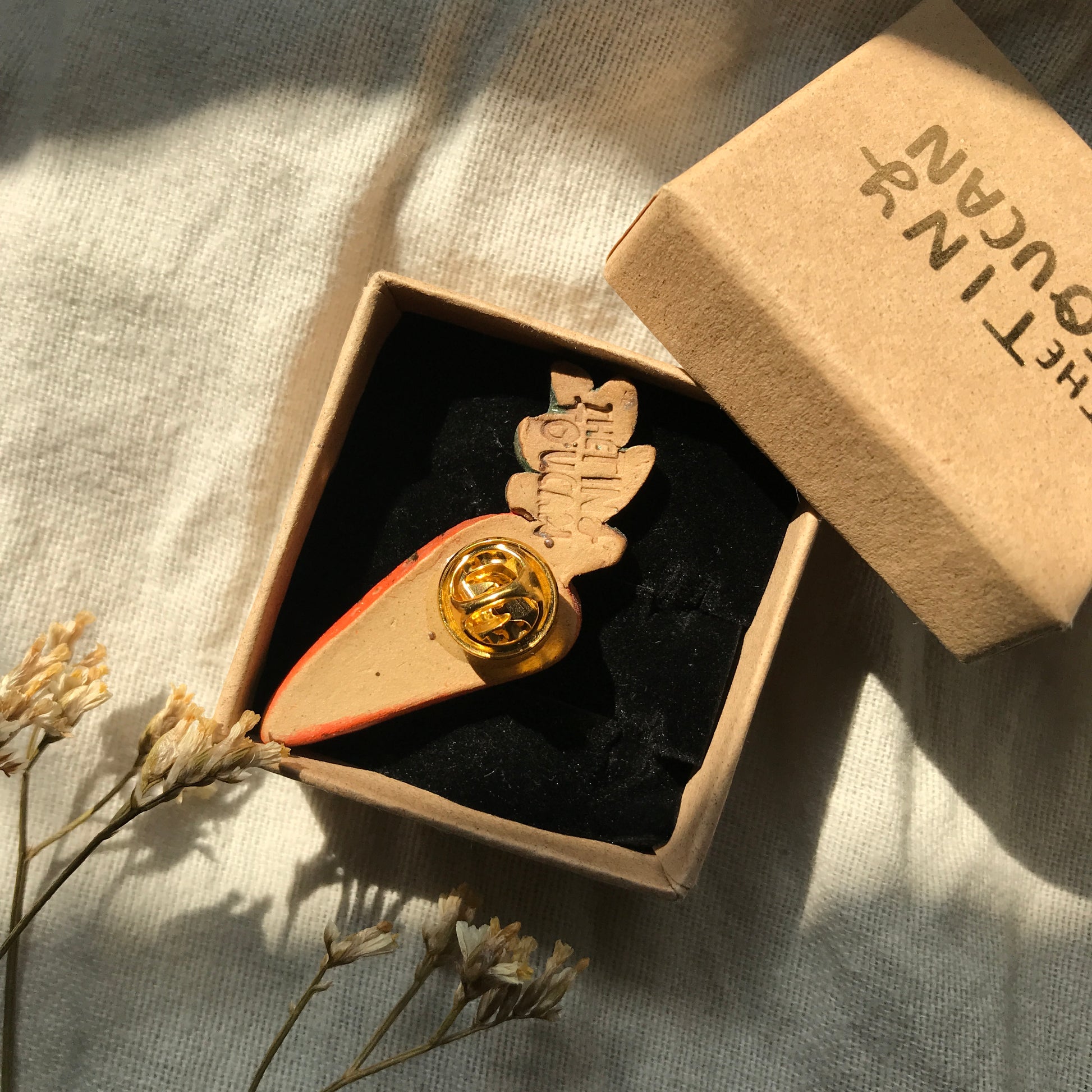 Ceramic Carrot Pin with 24 Karat Gold
