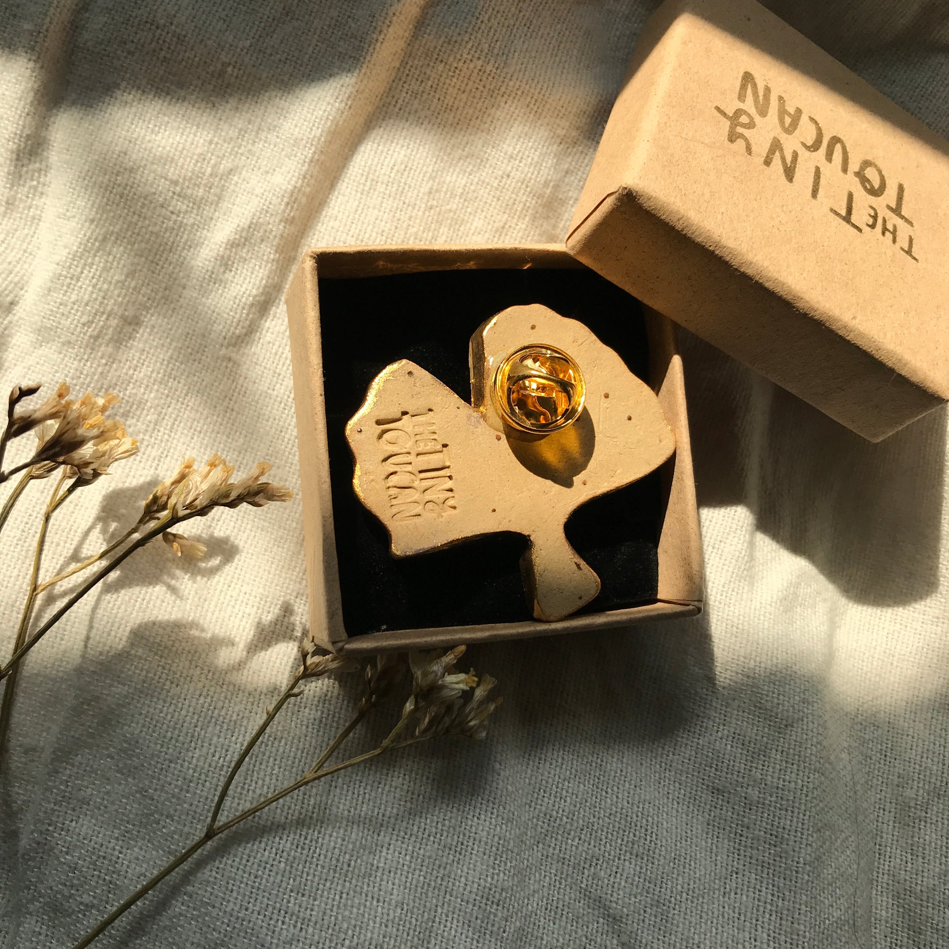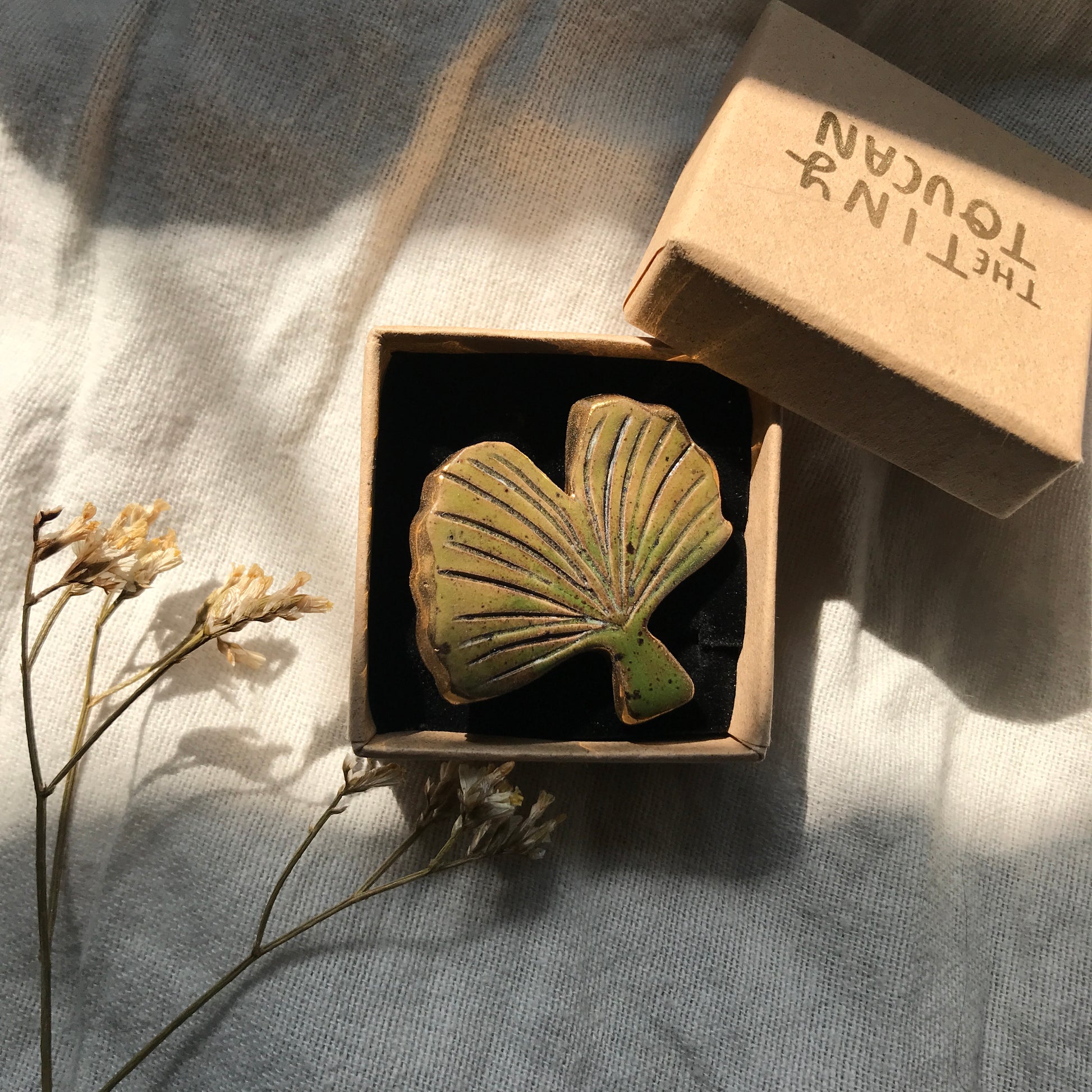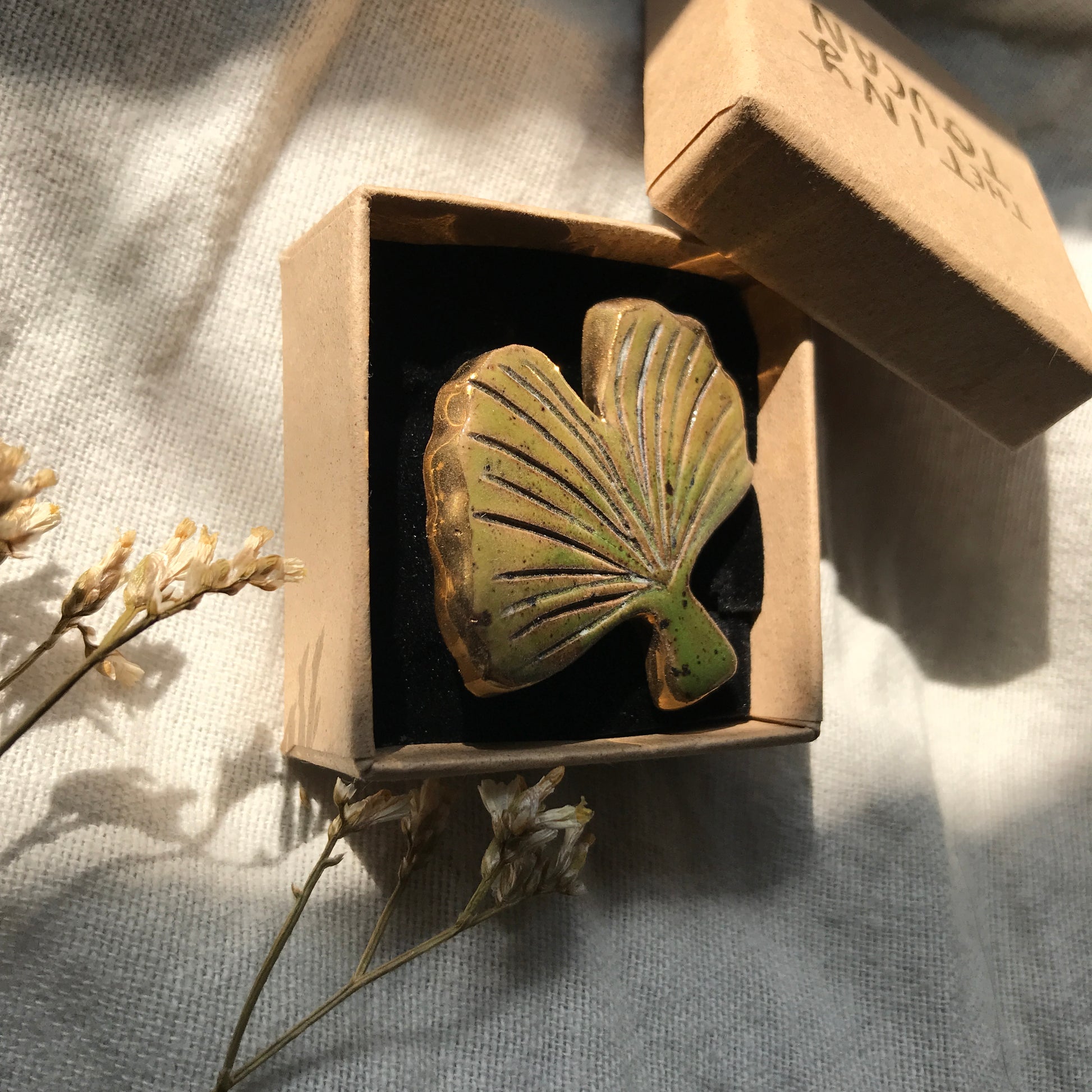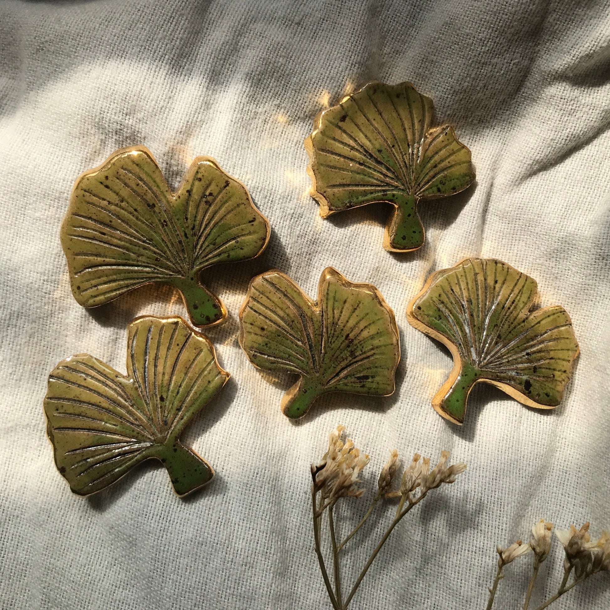 Ceramic Ginko Leaf Pin with 24 Karat Gold