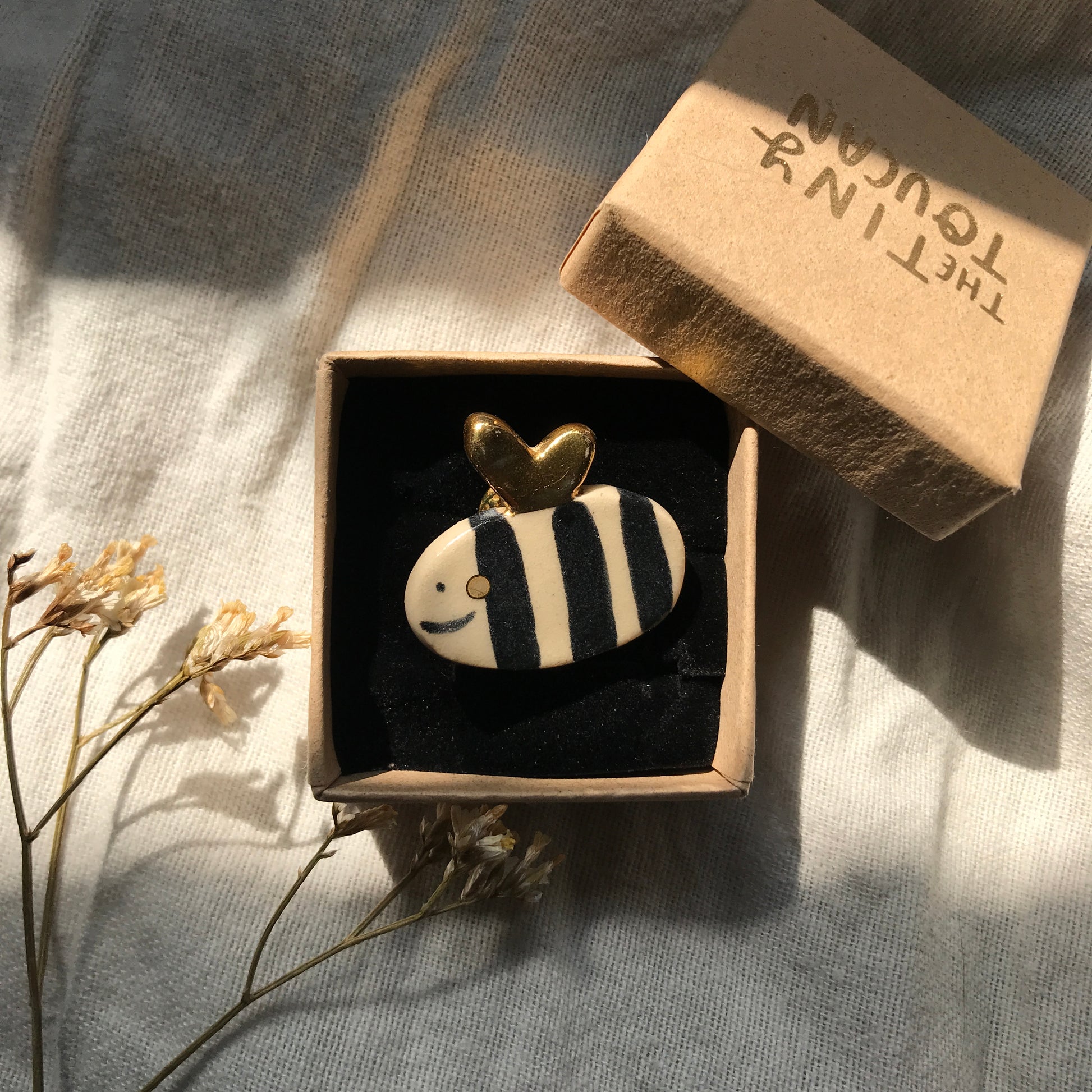 Ceramic Bumble Bee Pin with 24 Karat Gold