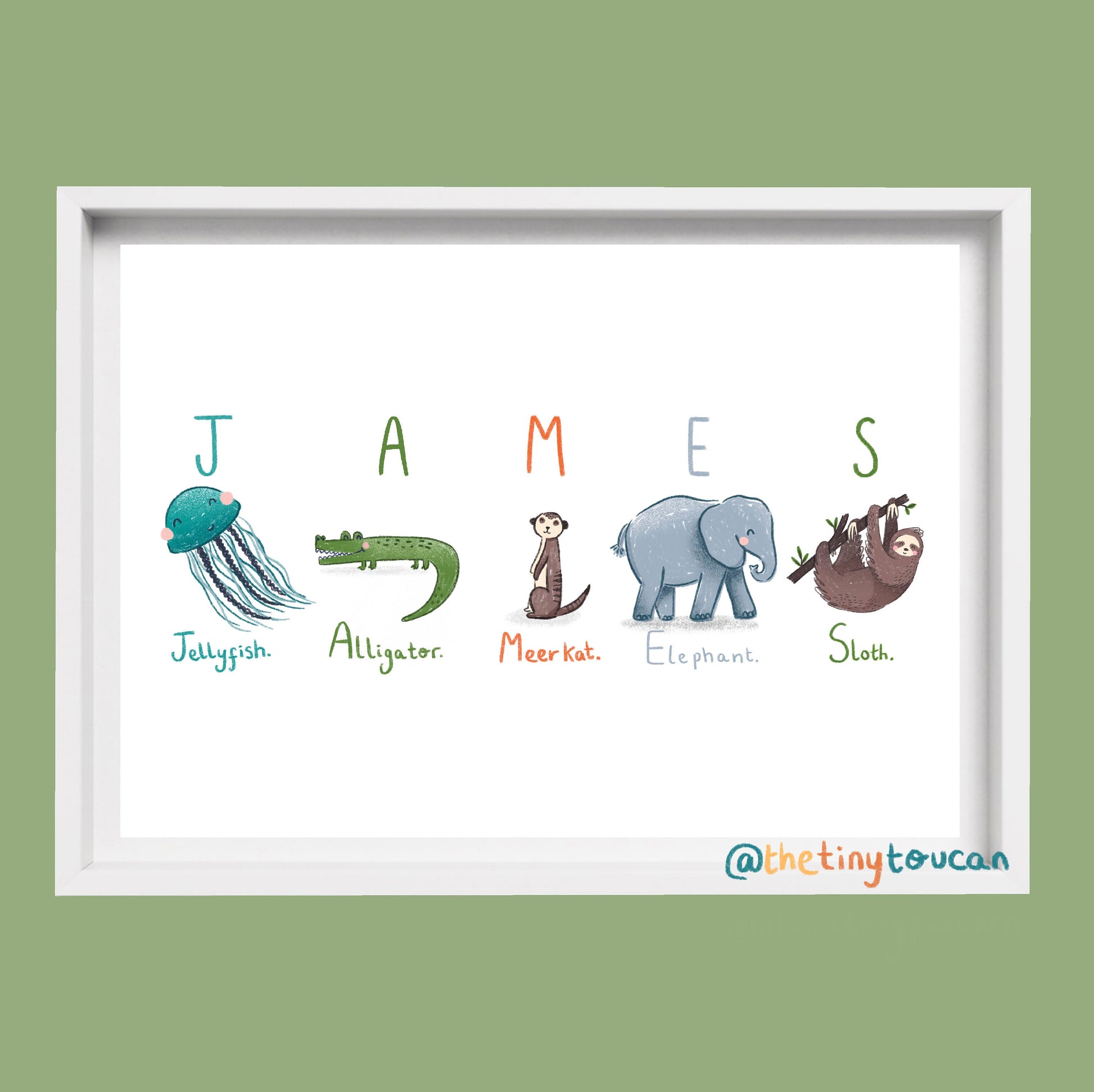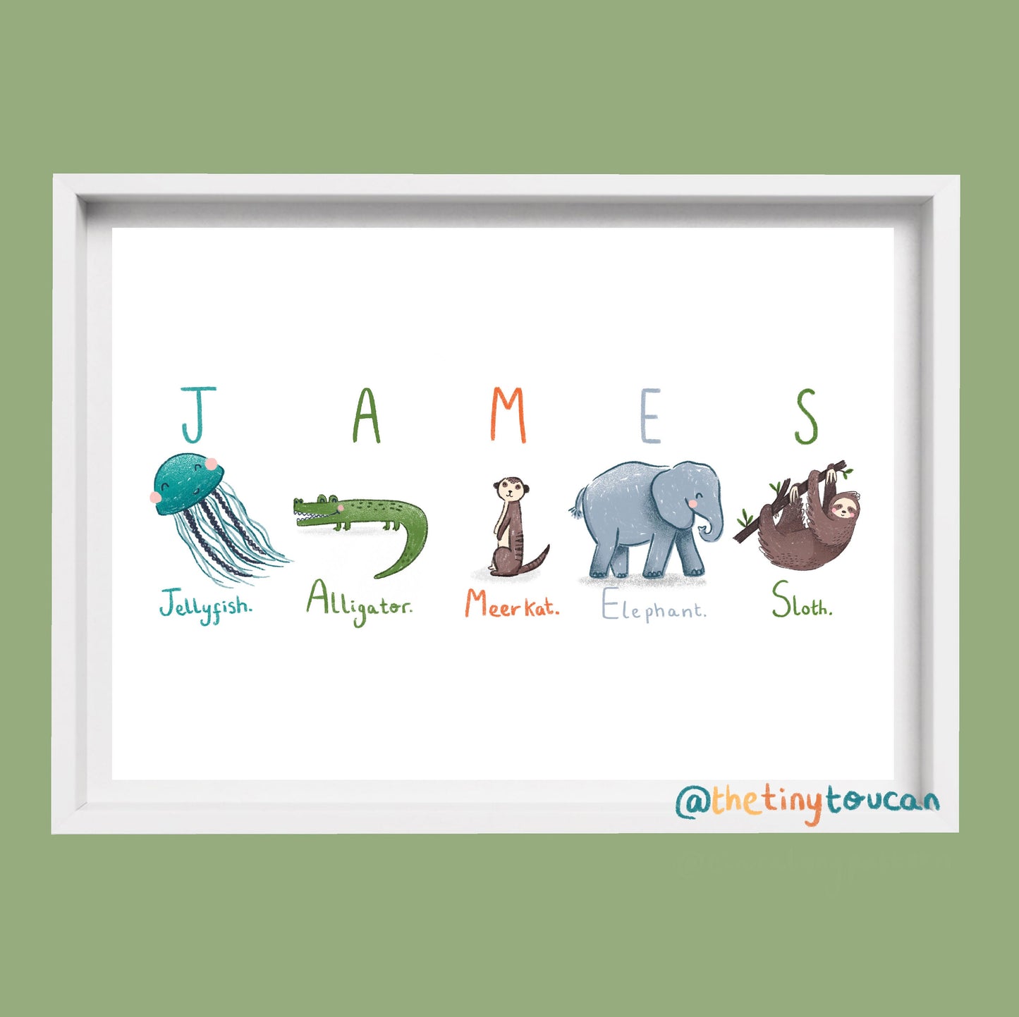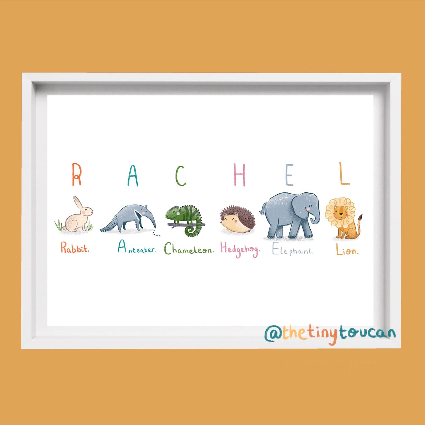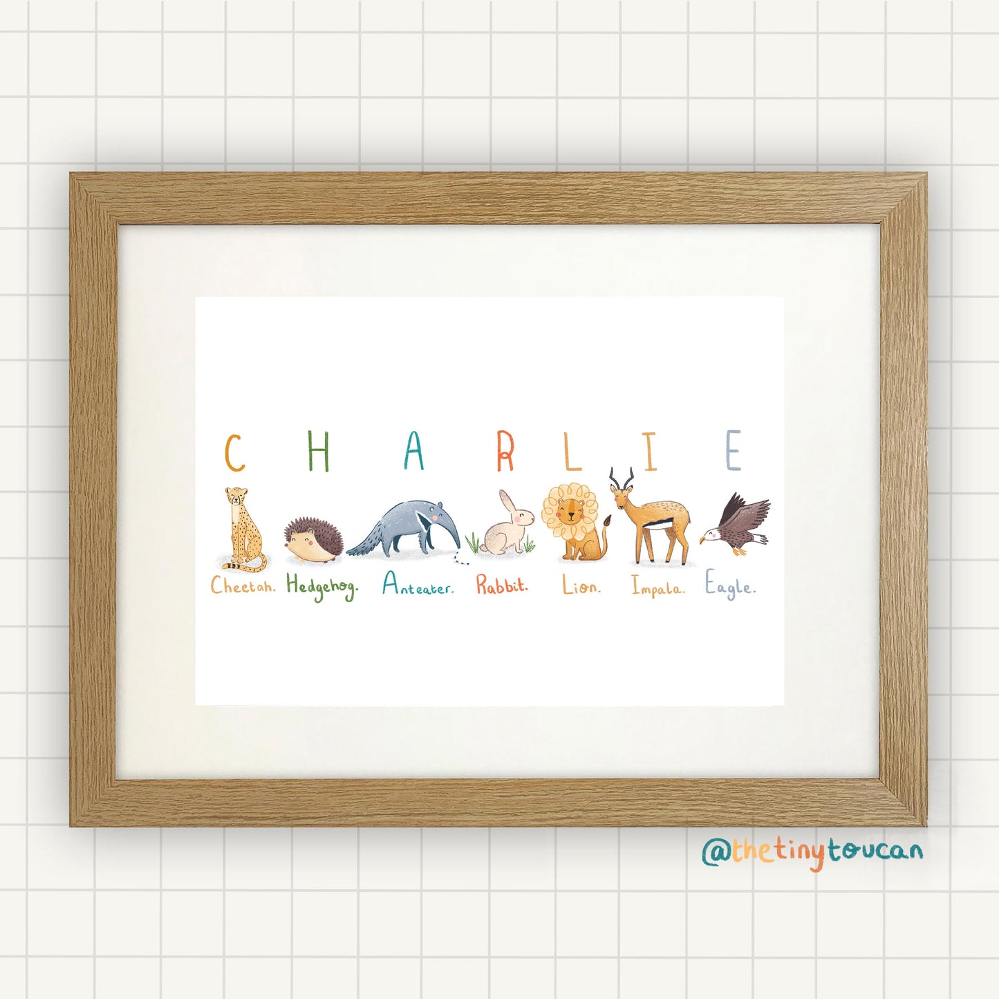 Gorgeous animal name art for any Childs bedroom, playroom or nursery! A fun decor option for a gallery wall in your Childs bedroom, as well as a fun way to learn some animal names and letters.