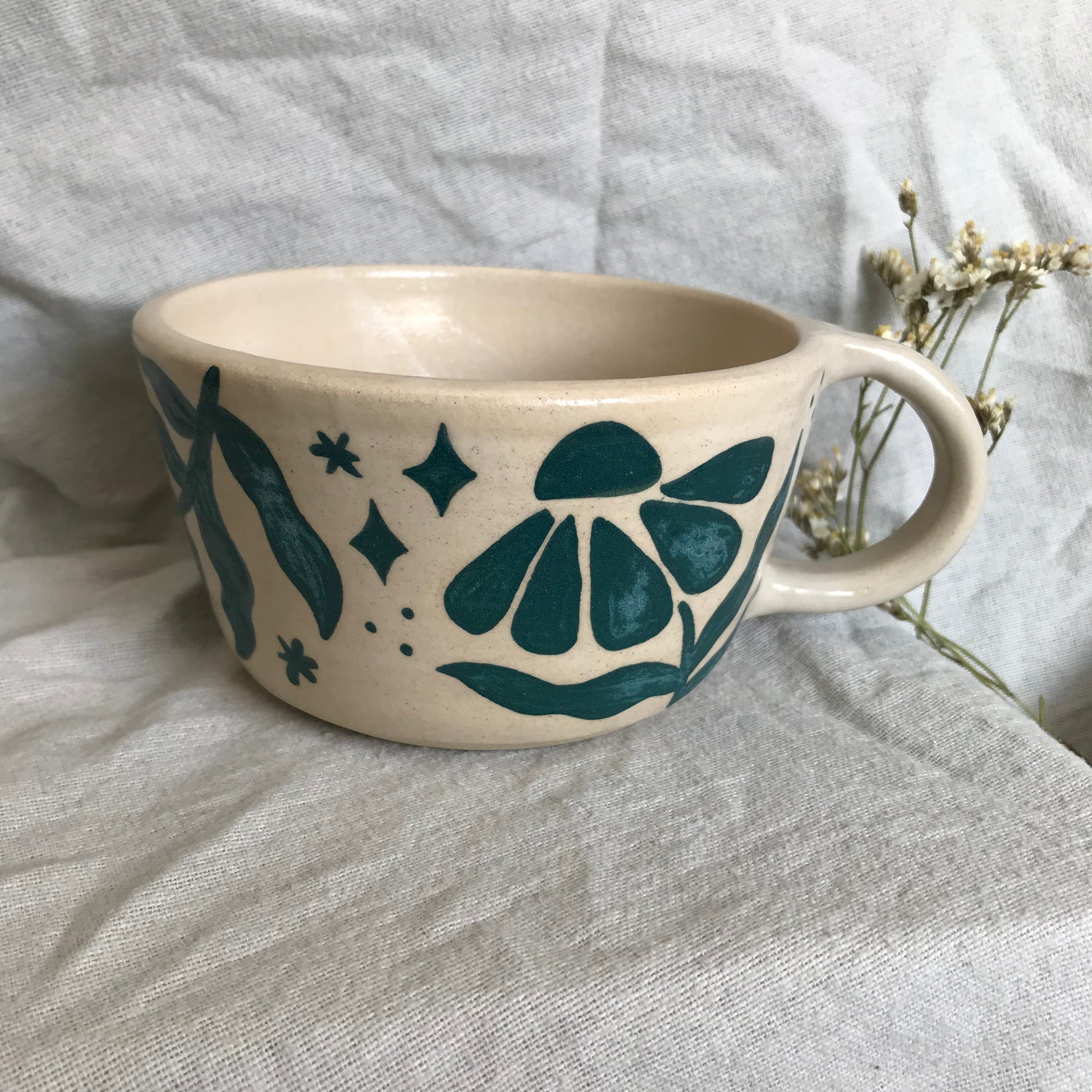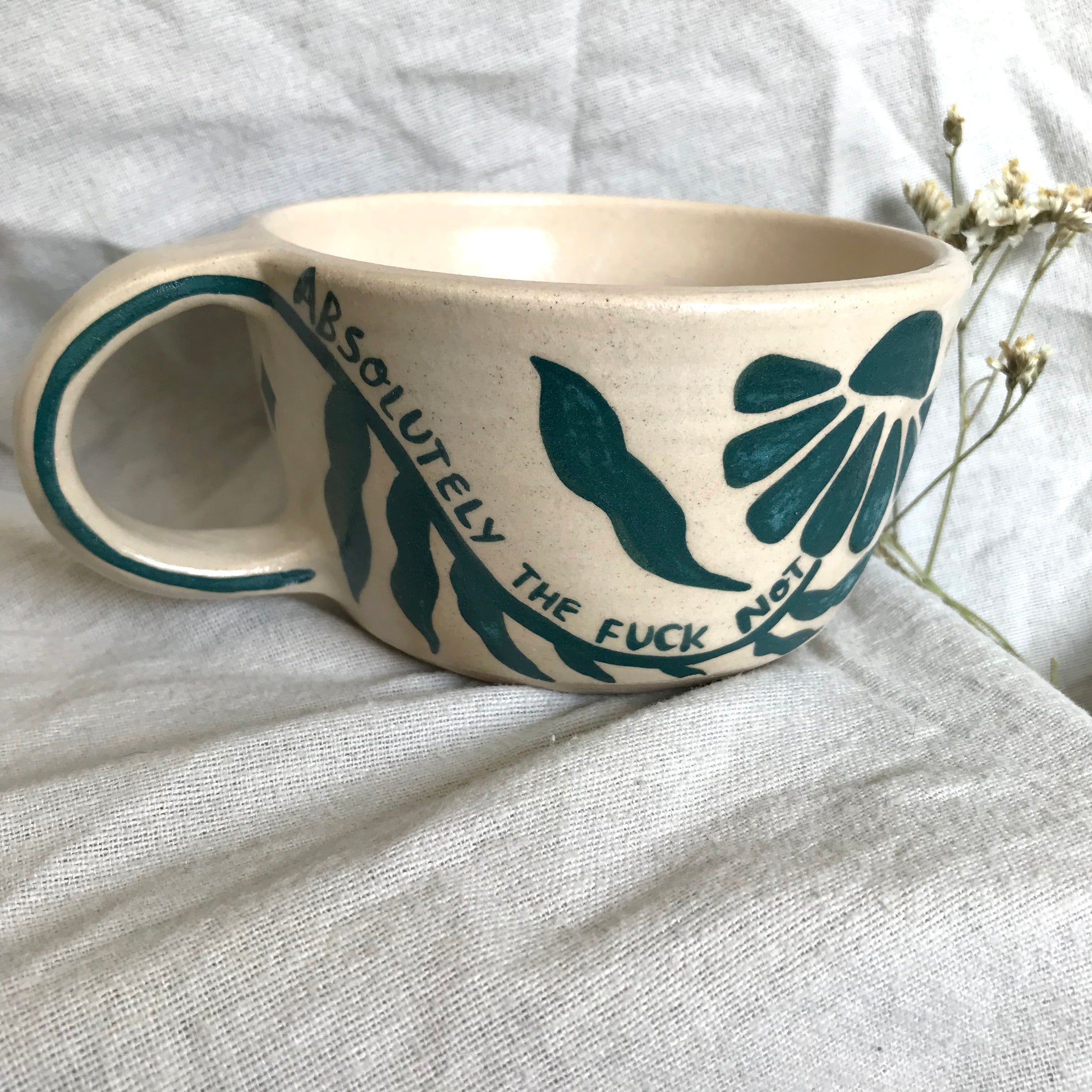 Absolutely the fuck not stoneware mug with floral details, perfect for any hot drink. Holds approx 350ml.