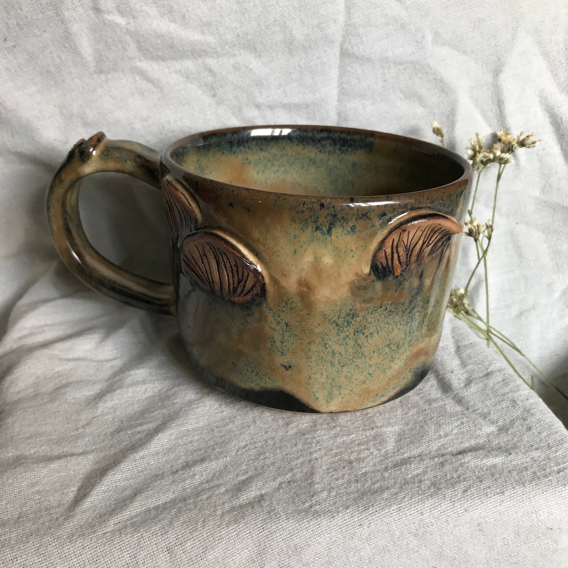 Stoneware mug with hand sculpted mushroom details perfect for any hot drink. Holds approx 350ml.