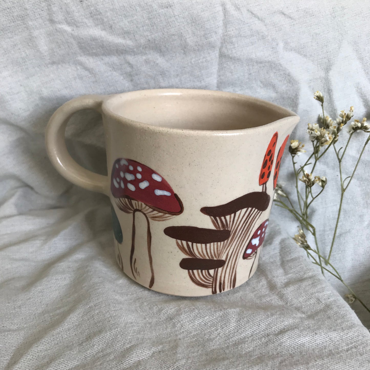 Stoneware mushroom illustrated jug. Perfect for gravy, custard, coffee, or why not your cocktail of choice! Holds approx 400ml.
