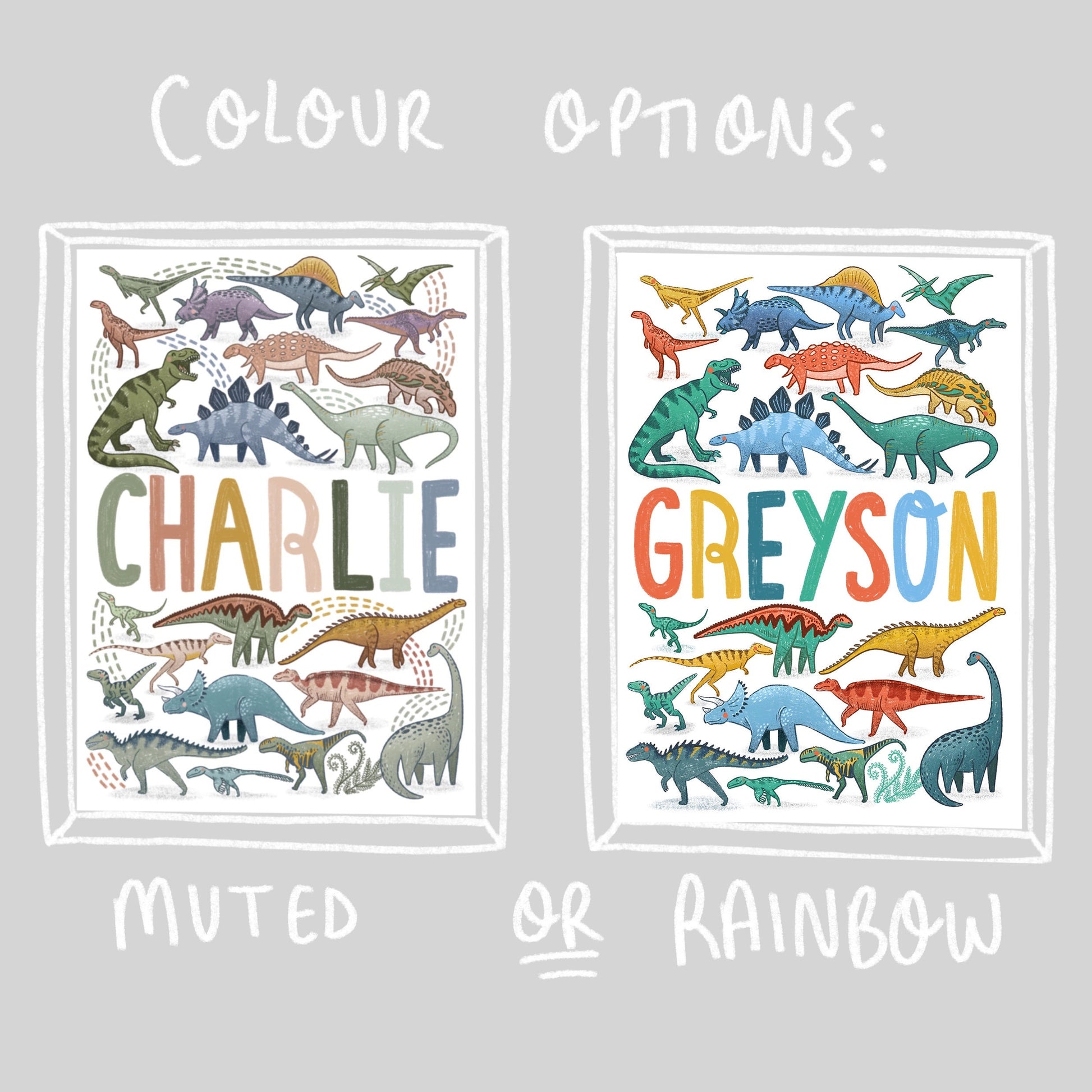 Custom cool dinosaurs name art perfect for any kids bedroom, nursery or playroom. A fun decor option for the perfect jungle, adventurer dinosaur theme bedroom!