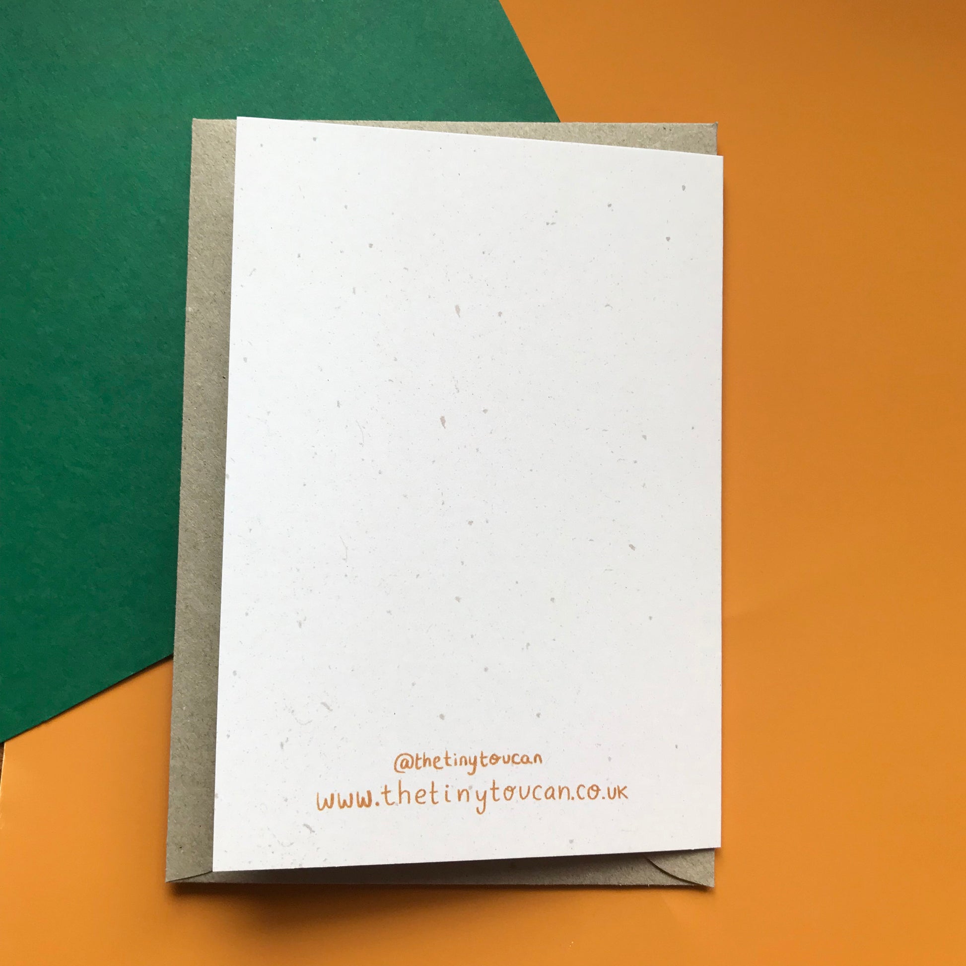 It is printed on 350gsm, extra thick, Matte, velvet soft recycled card. It comes with a brown recycled envelope. No plastic used.