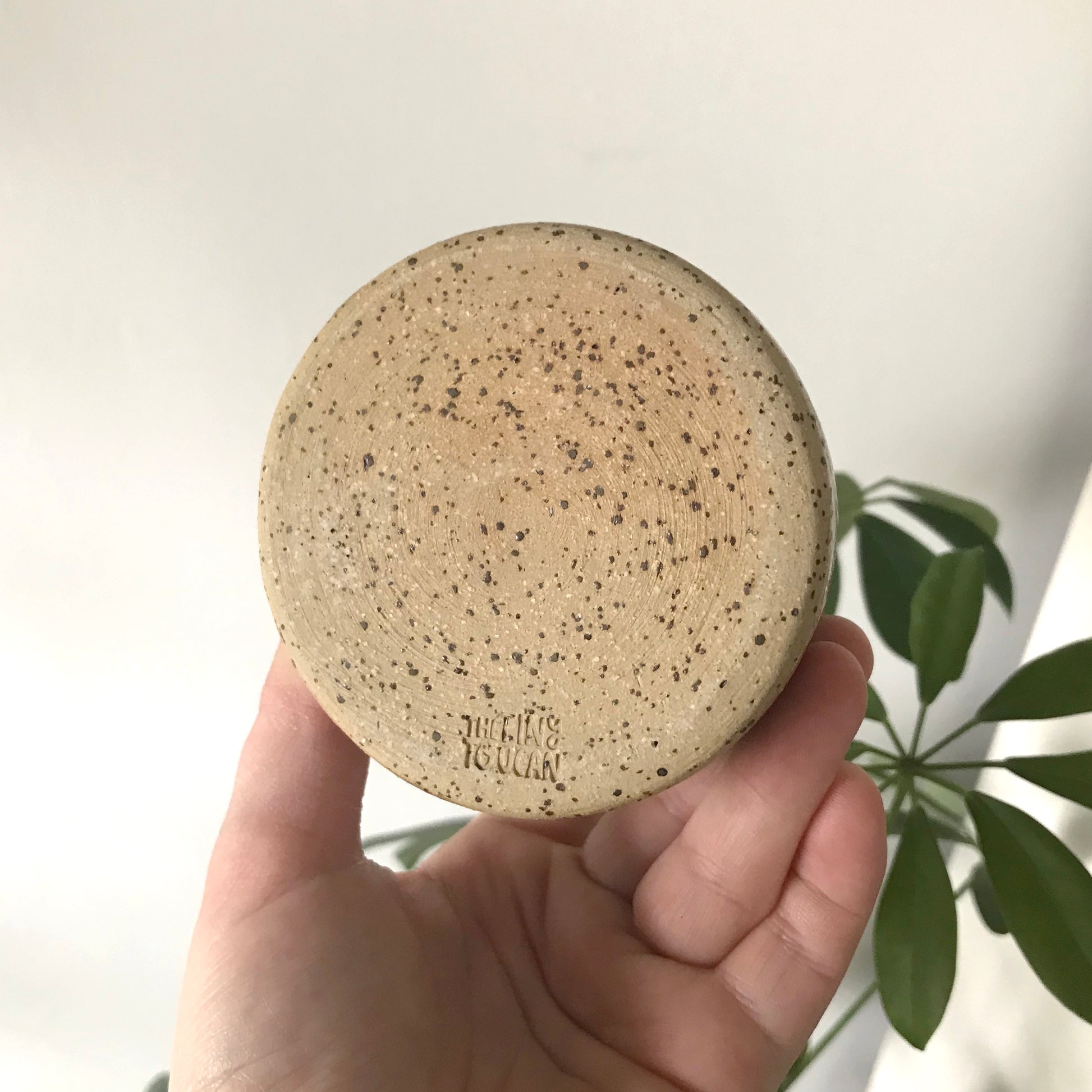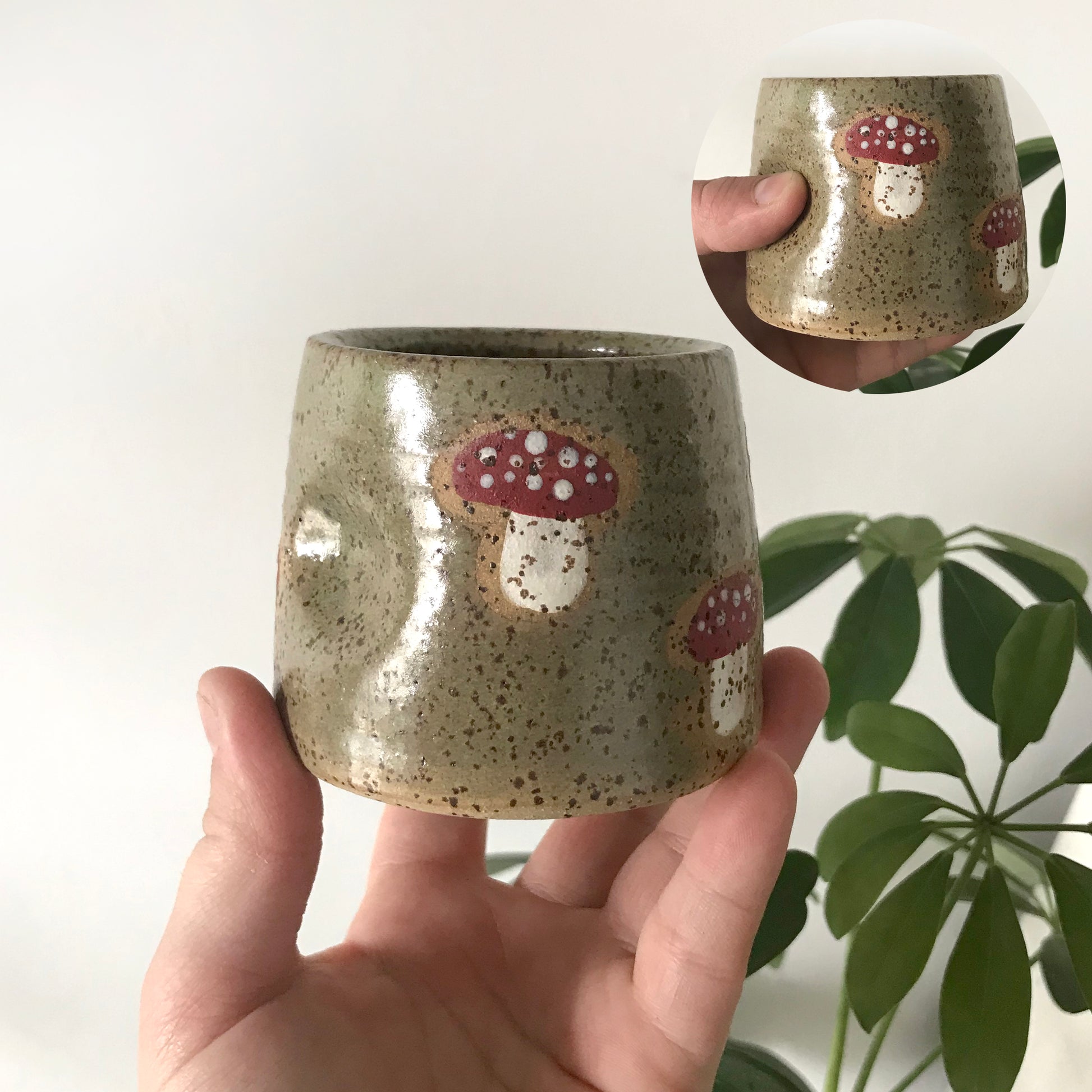 Stoneware handle-less mug with thumb dimple perfect for tea, sake, or a short coffee.