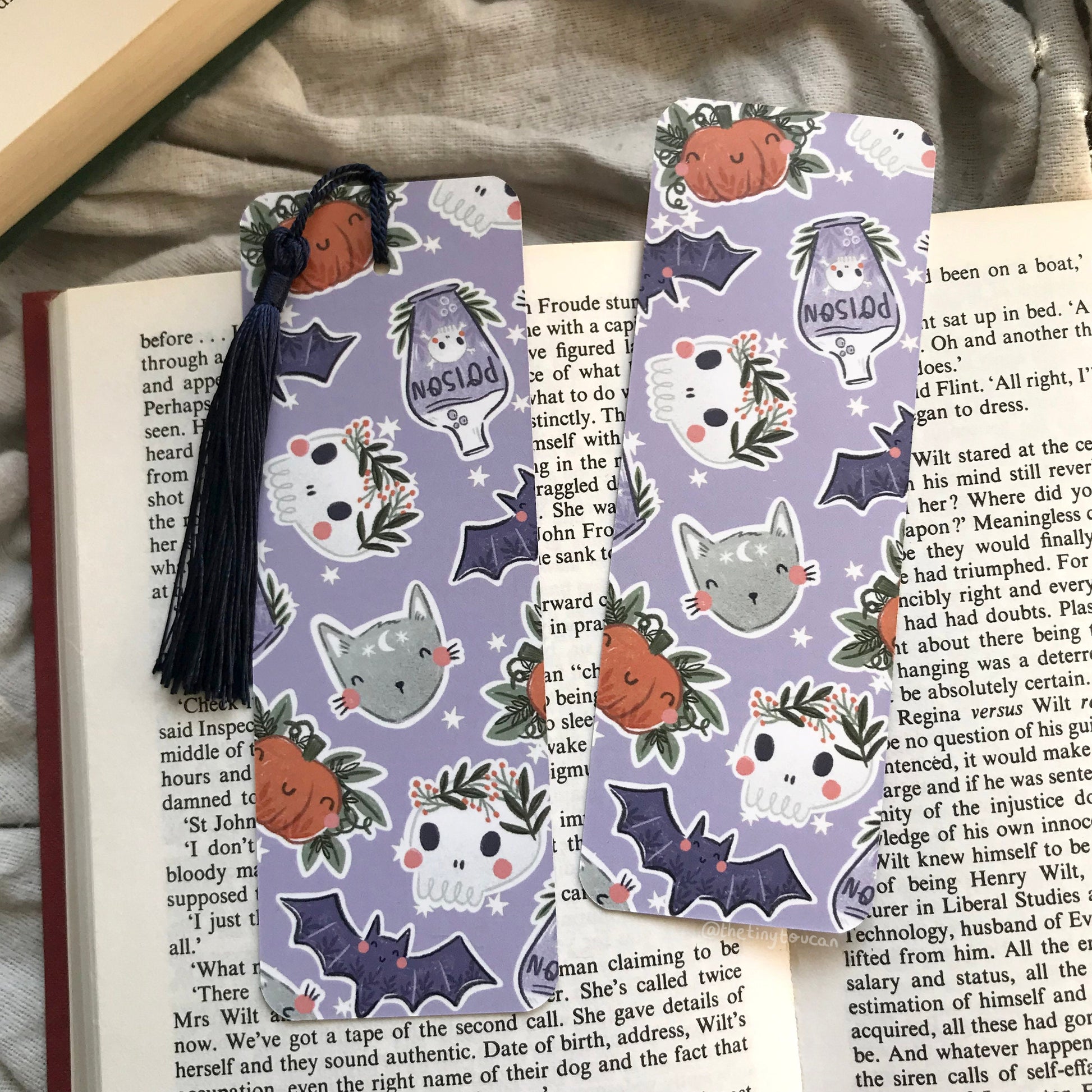 Illustrated Halloween cuties bookmark available with or without a silky soft navy tassel.