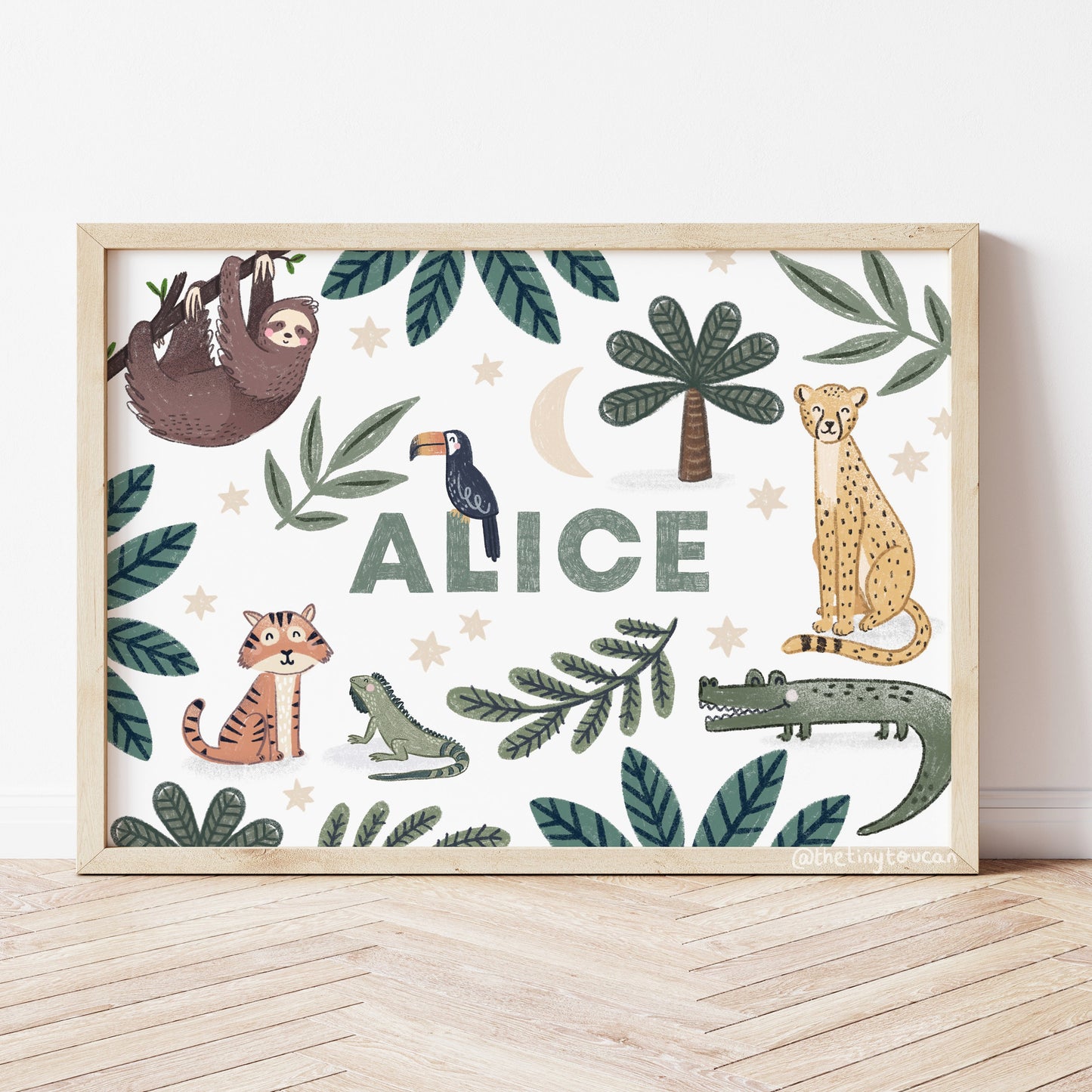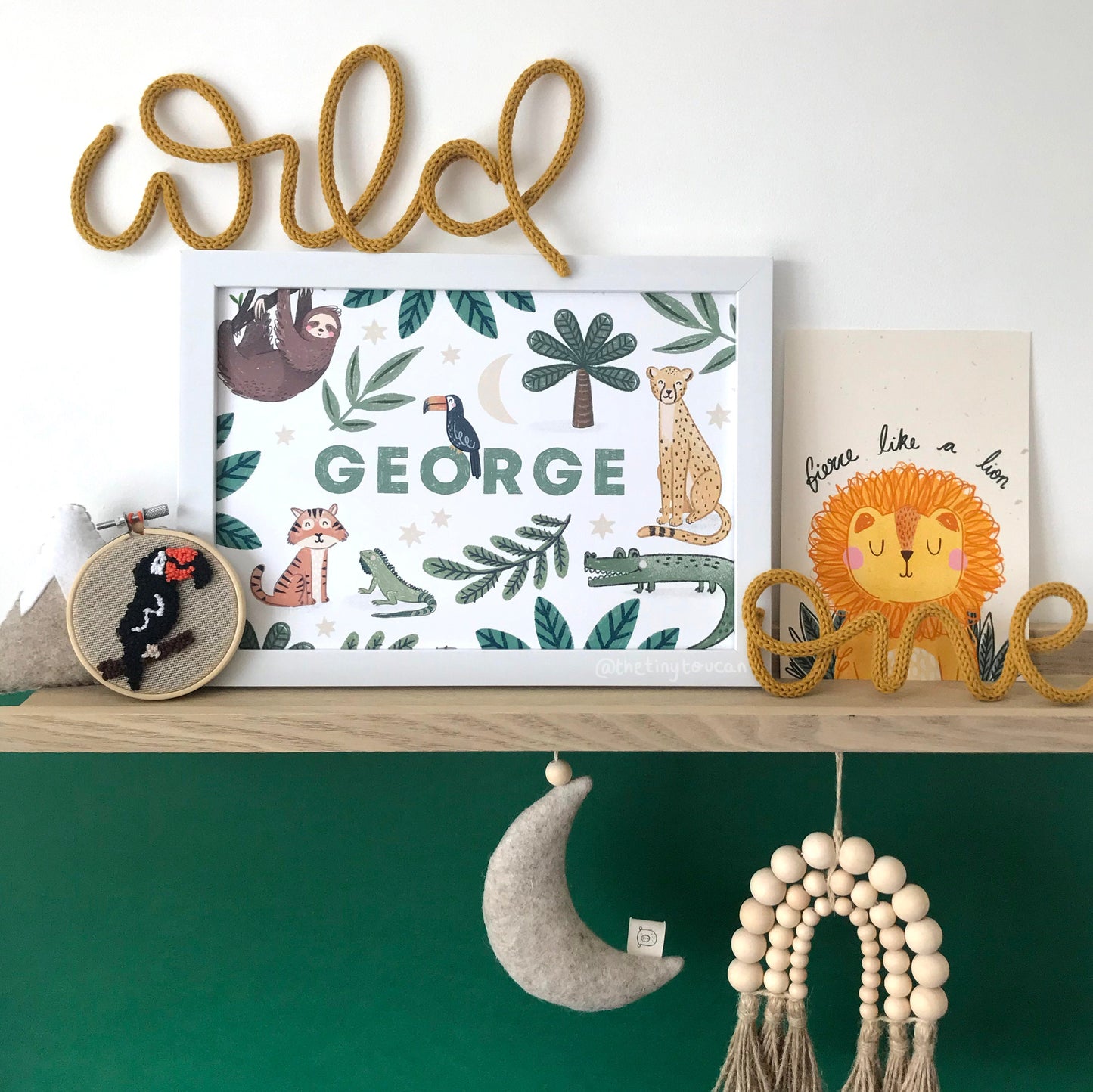 Custom jungle theme name art print perfect for children's bedroom or playroom door or wall.