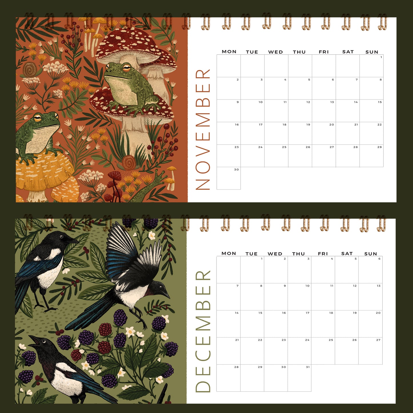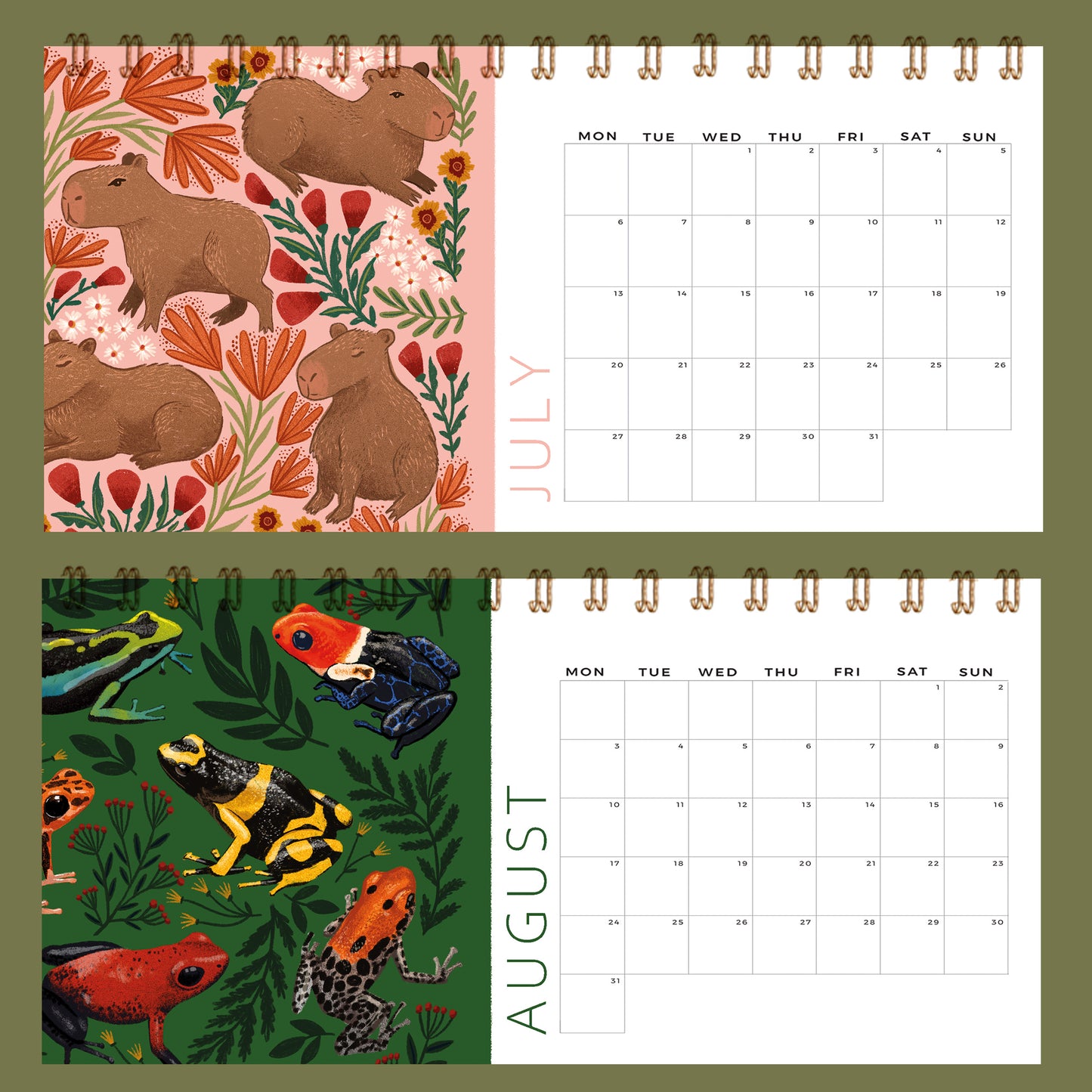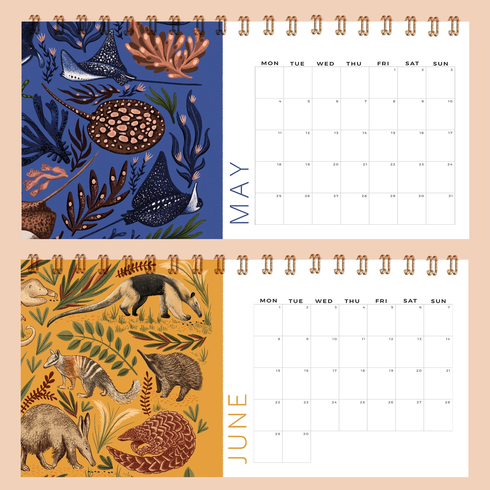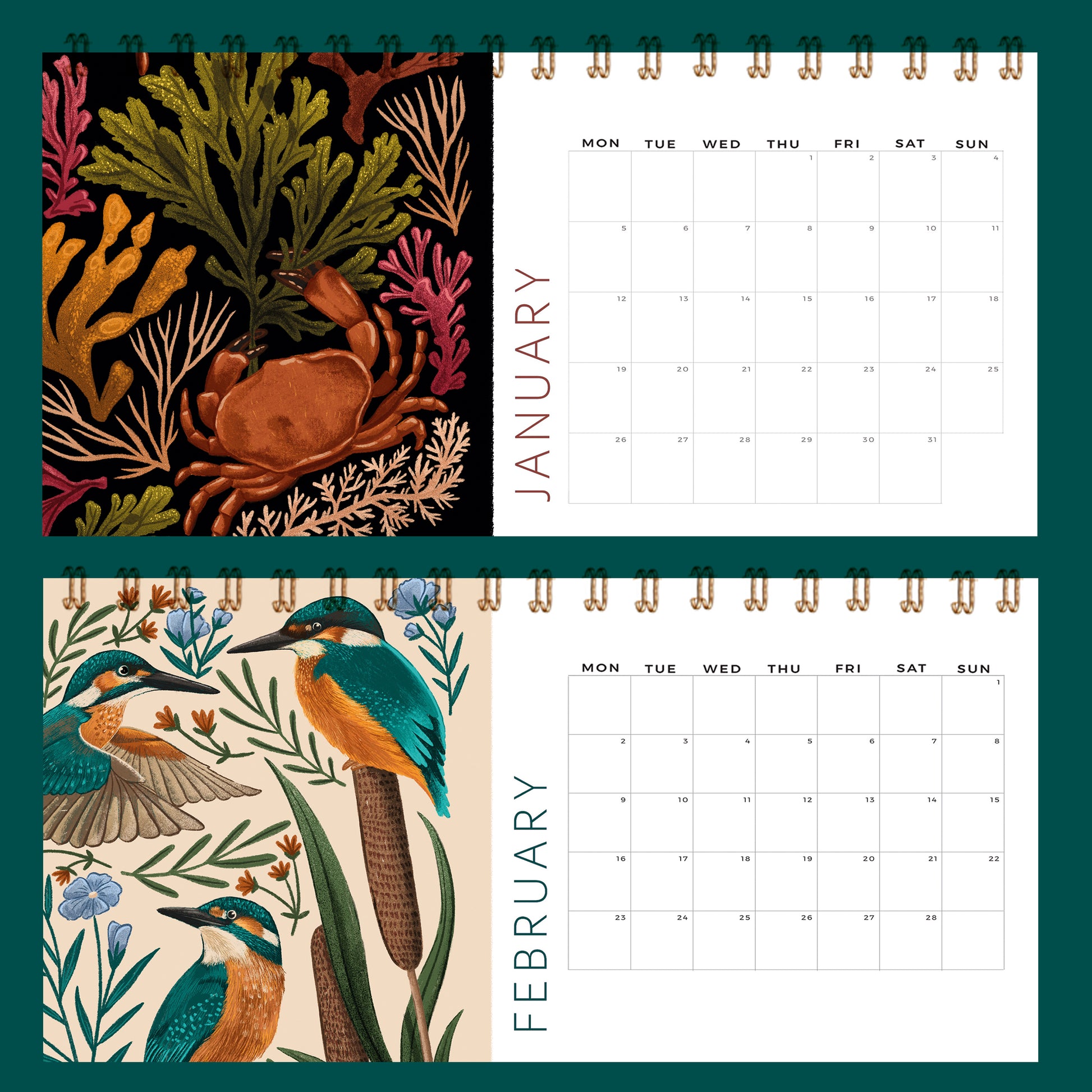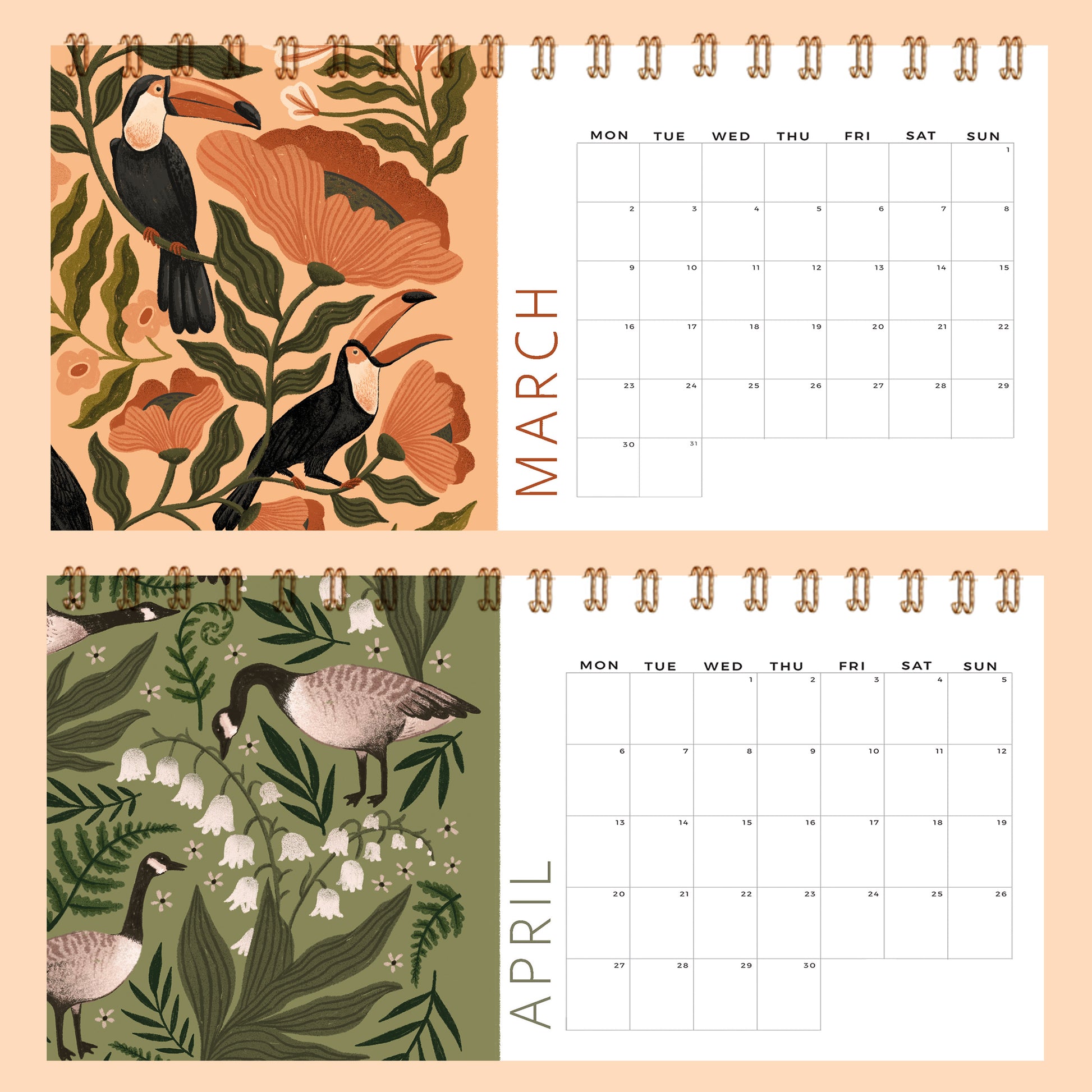 The 2026 Tiny Toucan Desktop calendar features 12 full colour, cosy illustrations which also make great mini art prints to frame come the end of the year. Lots of pattern, animals, folk style florals, mushrooms, bold colours and plenty of detail. A great stylish way to keep organised for the year.