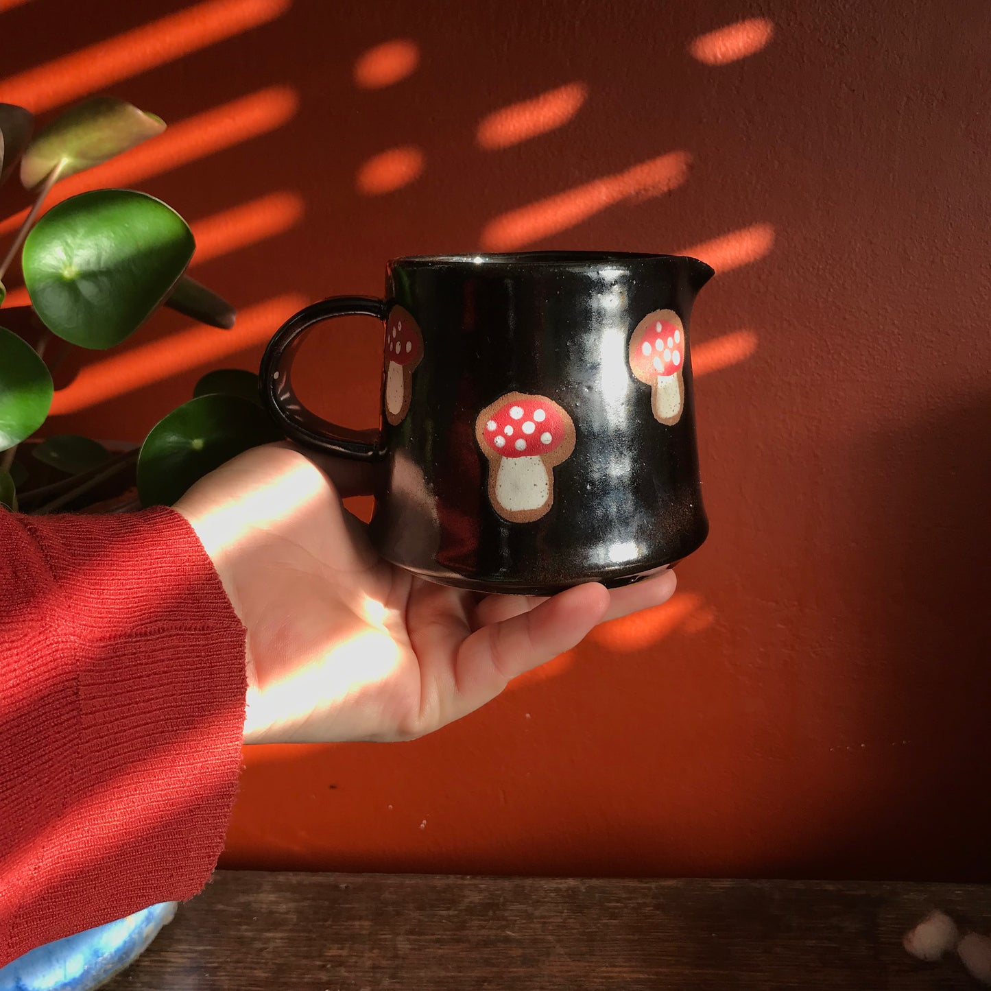 Stoneware jug with Fly Alargic mushroom design and scalloped edge detailing. Perfect for gravy, custard, milk or any of your other favourite sauces.