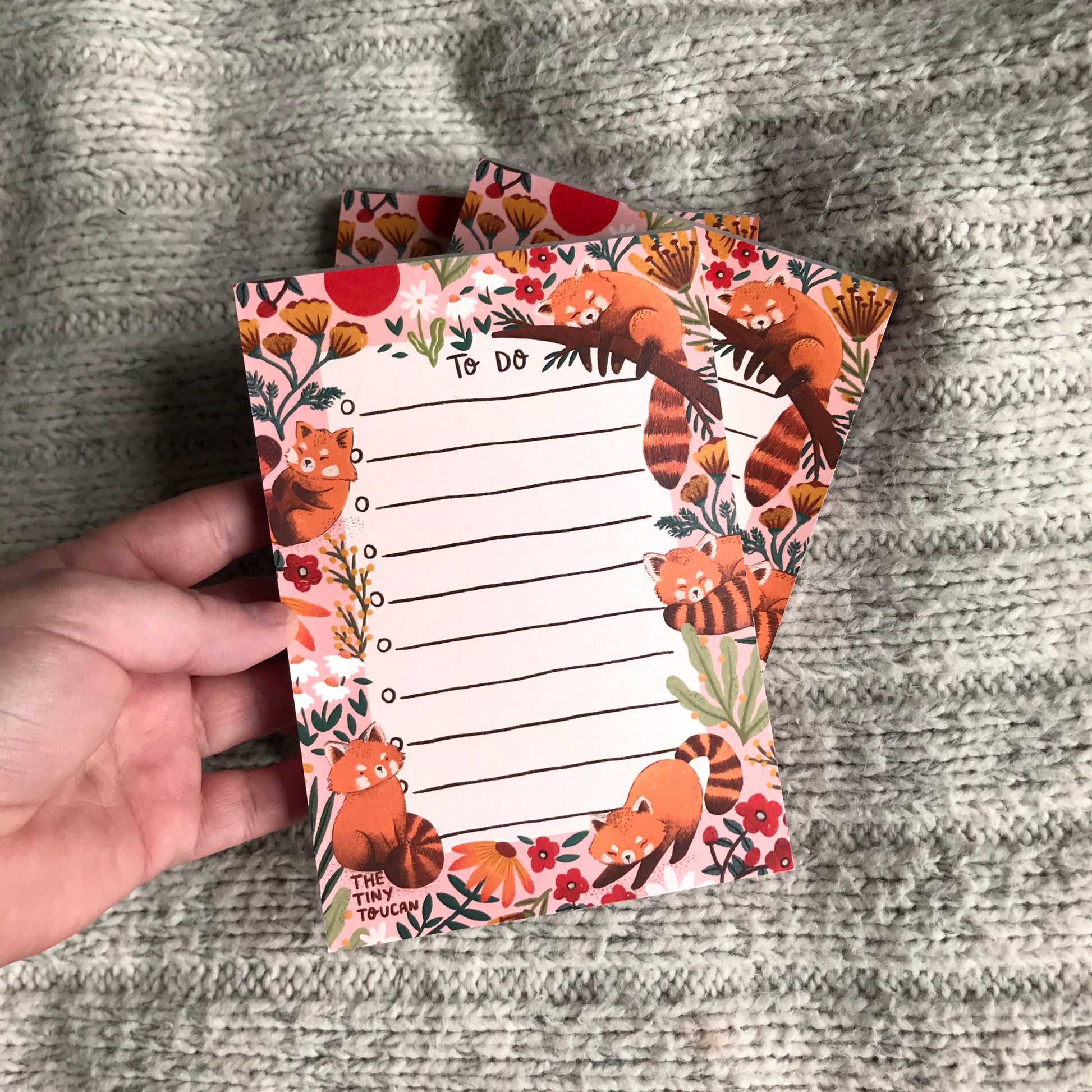Featuring illustrations of an assortment of cute, playful and grumpy red pandas alongside 10 perfectly wobbly wobbly lines with check boxes to keep yourself organised in work and life.