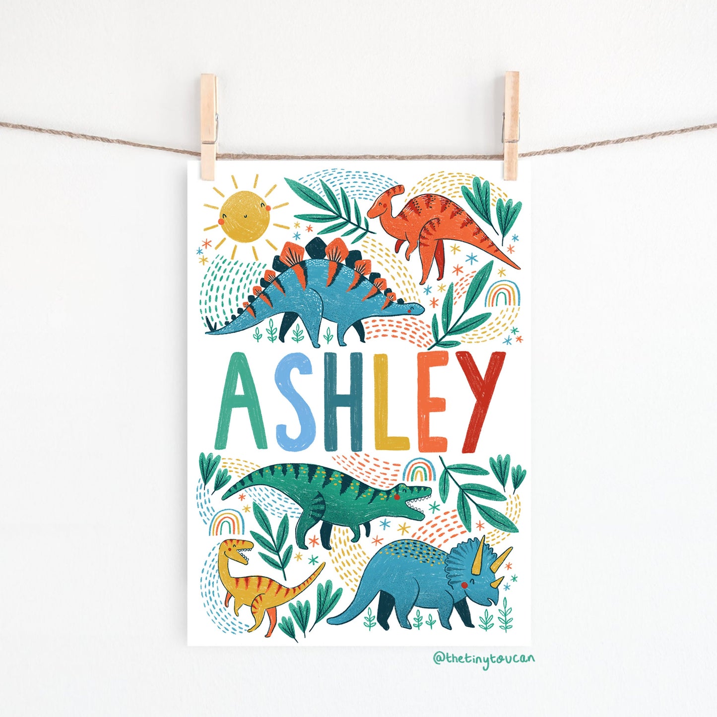 Rainbow Land Dinosaur Name Print