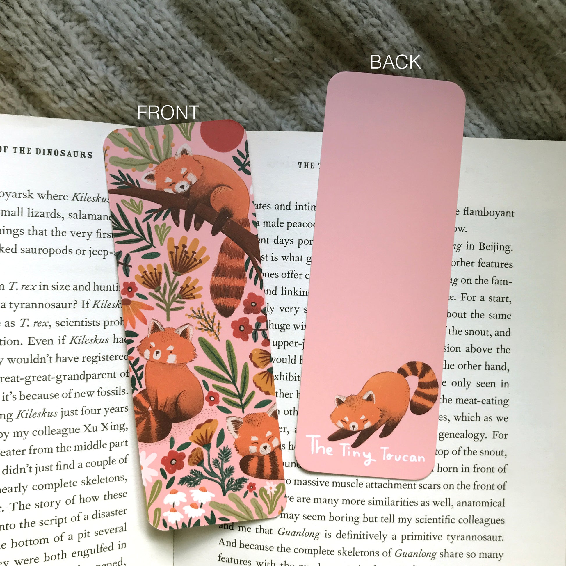 Cute grumpy red pandas illustrated bookmark available with or without a silky soft tassel. A perfect little gift for the red panda lover in your life.