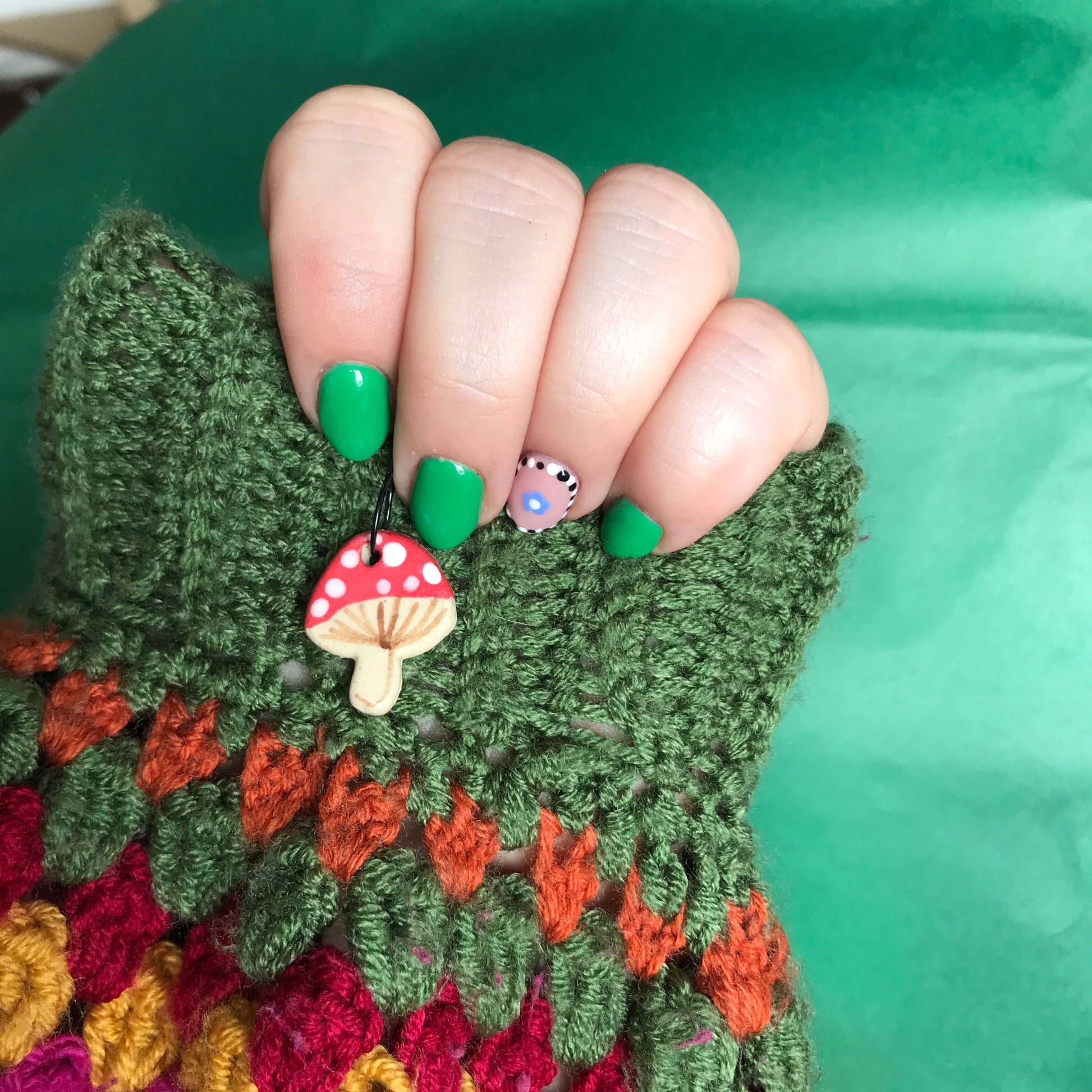 Hand made and painted stoneware stitch markers for knitting and crochet projects.
