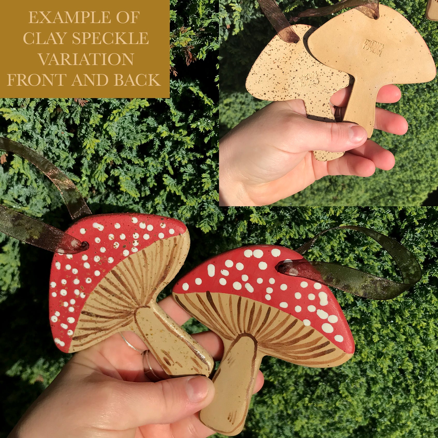 Please note every mushroom decoration is hand made making them all one of a kind and slightly different, please bare this in mind when ordering. As the clay is reclaimed from the waste clay from throwing, there will be a variation in speckles, please see images for examples.