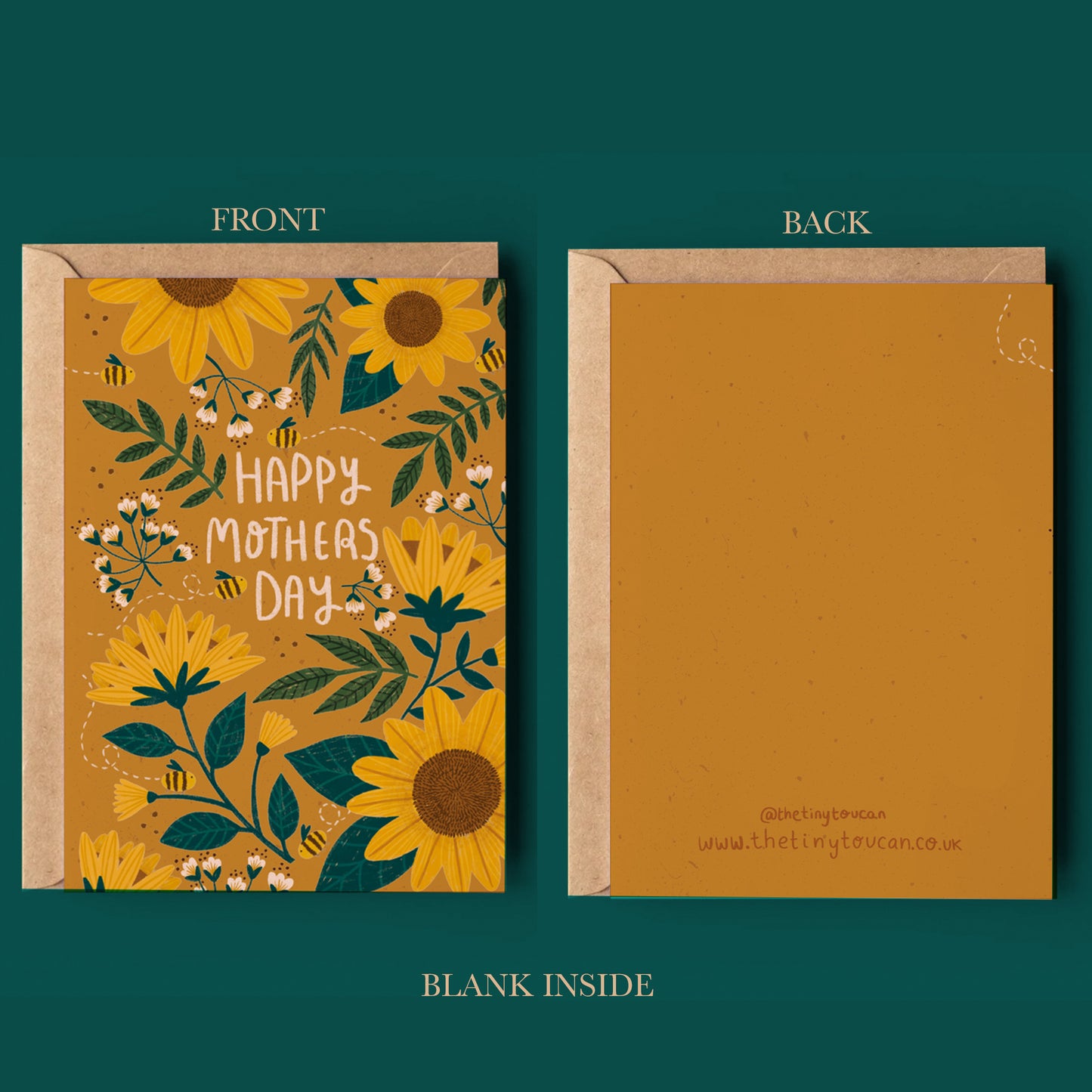 Printed on 100% recycled thick matte card and comes with a brown Kraft recycled envelope.