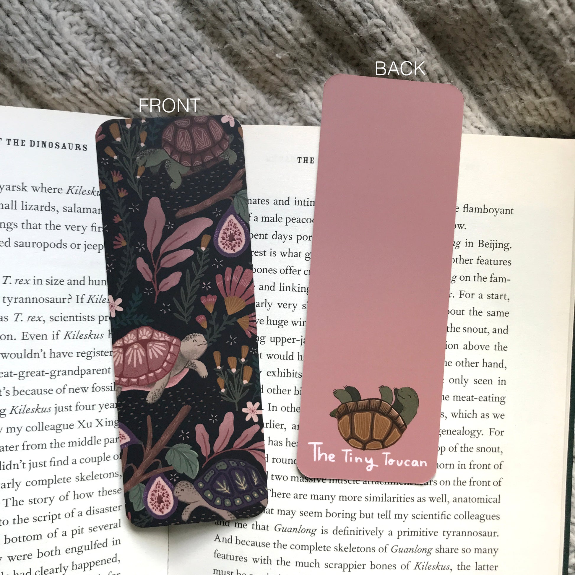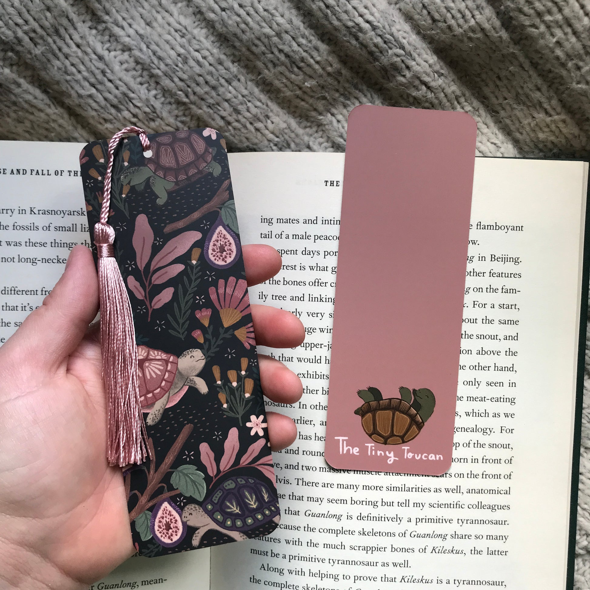 Tortoise and Fig bookmark illustrated bookmark available with or without a silky soft tassel. A perfect little gift for the tortoise lover in your life.