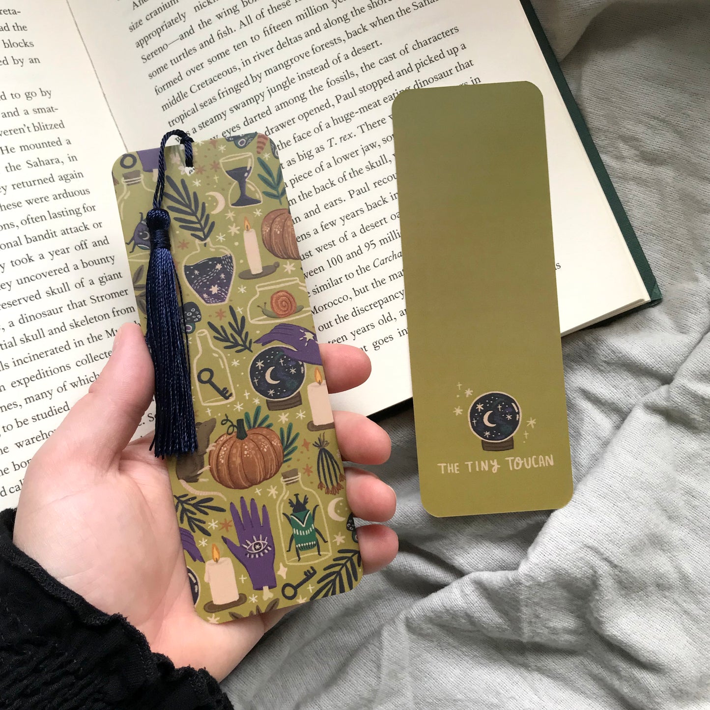 -Witches Brew and Crystal Ball bookmarks with tassels.